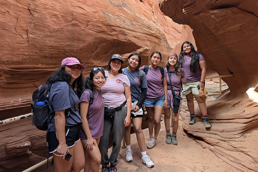 Learning from the land and its peoples is a key component of LeaderShift. LeaderShift scholars travel to places like the Grand Canyon, Tuba City, and Kykotsmovi Village, learn from local communities about issues including energy extraction and the transition away from fossil fuels toward more sustainable and equitable economies, and participate in service-learning projects with local community partners.